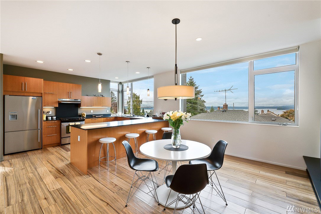 This gorgeous Gatewood modern features sweeping mountain & Sound views. Nearly 120k in upgrades include 130% solar, heat pump w/mini-splits, Gaco roof & Hunter Douglas blinds. 10′ main floor ceilings w/wall of windows to bring in light & take in the views. Radiant heated floors on lower & main, stunning African Walnut hardwoods, custom fir cabinets & black honed granite counters. Lower floor AirBnB, 2nd owner’s suite or office? Top floor w/incredible views & owner’s suite with all the amenities!